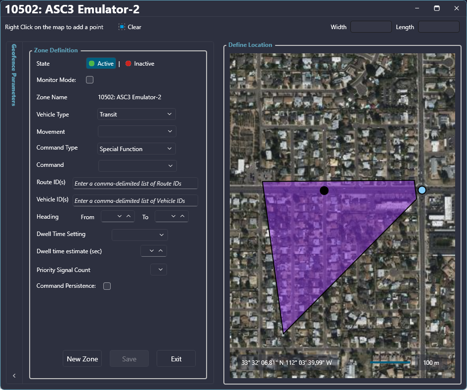 Select which type of vehicle the priority zone is for Options include Bus, Emergency Vehicle, Light Rail, Bicycle, Horse and Buggy, and Checkout Zone |
