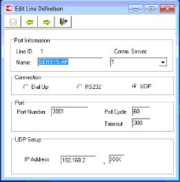 | Mode | Sets the mode that is used for communication (IP, Serial, Dial-up); IP requires a line (can be created with auto feature); Serial requires a Line creation and Baud Rate definition; Dial-up requires a Line creation, Phone Number, and Baud Rate definition |