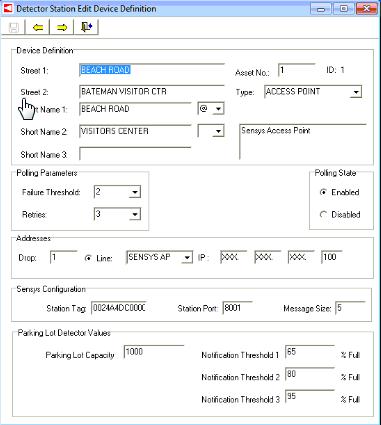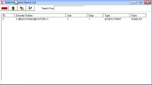 The Detector Stations are displayed in the Detector Station Device List form. The user defined parameters of intersection description, line and drop numbers, detector type, and detector state are shown.