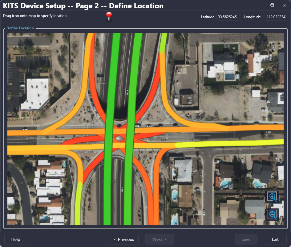 When adding a new device, the location can be set or edited from the 'Define Location' page of the wizard. If it is a new device and a pin has not been placed, click and drag the pin at the top of the form to the desired location. If a pin has already been dropped, it can be relocated by clicking on it and dragging it to the desired location.